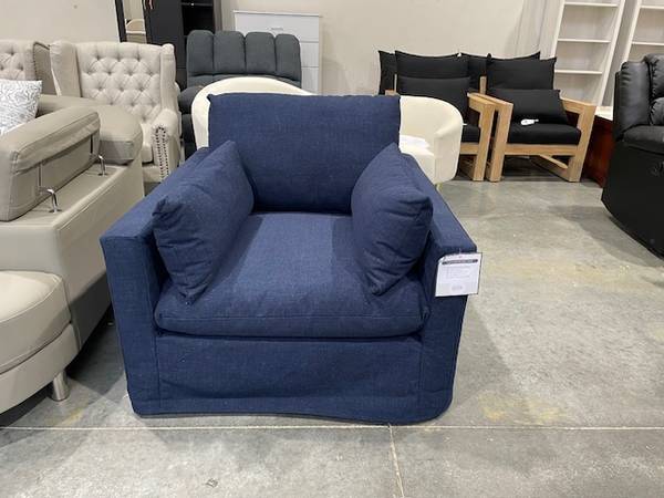 Brand New Birch Lane Luna Slipcovered Chair and a Half in Blue Nomad Ink Chair measures 39 in W x 42 in D x 33 in H Located in Noblesville Just north of Costco next to Indy Premier Soccer Retails...