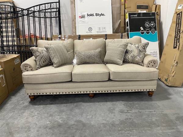 Brand New Three Posts Freda 96'' Upholstered Sofa with Reversible Cushions and Throw Pillows