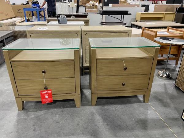 Brand New Granada Natural Pine 2 Drawer Nightstand Side Table (Set of 2) Dimensions 25.5"W x 16"D x 25.5"H Located in Noblesville Just north of Costco next to Indy Premier Soccer Retails For $1,300...