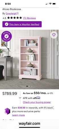 Brand New Greyleigh Alicea 60"X32" Pink Bookcase Shelf Storage Dimensions 60'' H X 32'' W X 14.5'' D Located in Noblesville Just north of Costco next to Indy Premier Soccer Retails For $790 Come on...