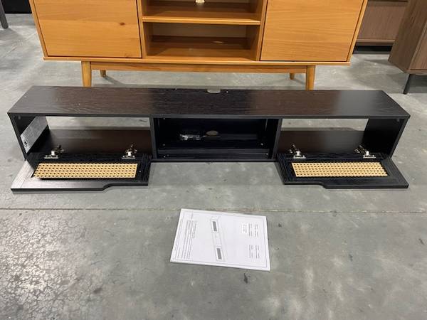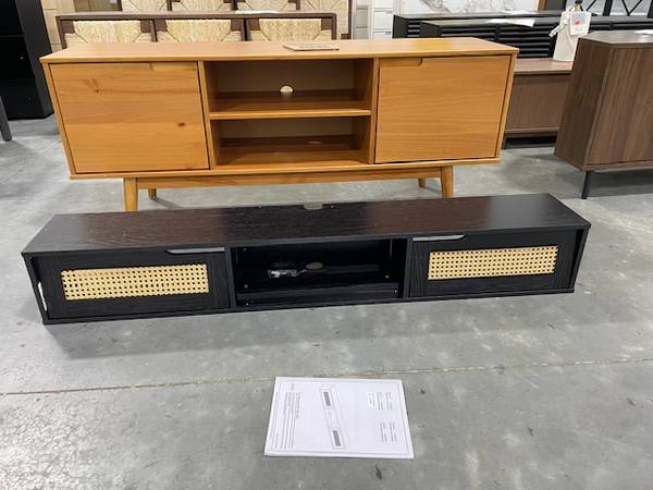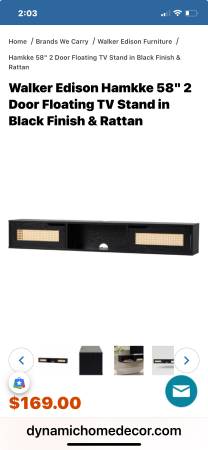 Brand New Walker Edison Hamkke Boho Black Rattan 2-Door 58" Floating TV Stand Dimensions 8.75" H x 58" L x 9" W Located in Noblesville Just north of Costco next to Indy Premier Soccer Retails For...