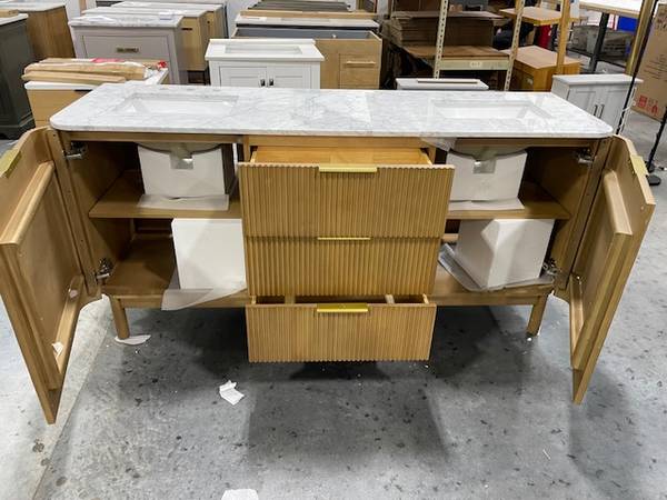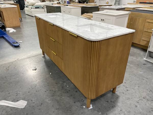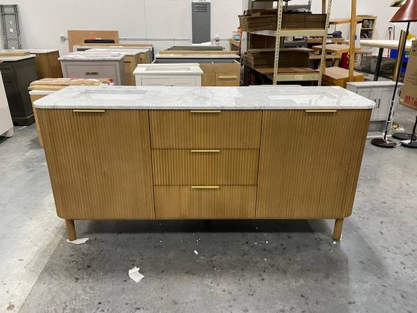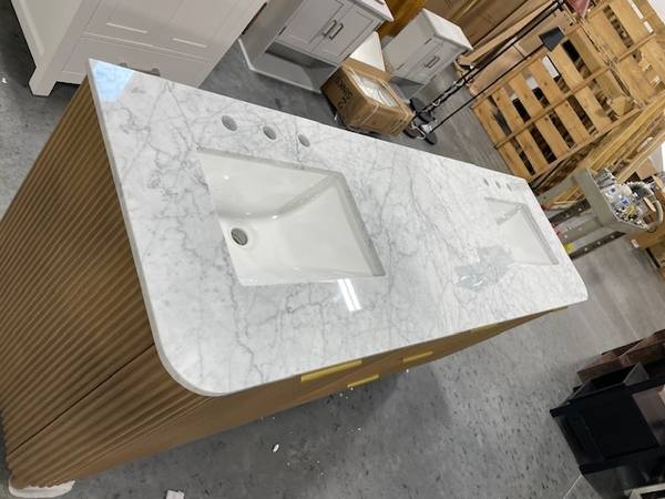Brand New Joss & Main Nova 72" Marble Top Double Sink Vanity Reeded Wood Carrara Marble Countertop Dimensions 34.5'' H X 72.25'' W X 22'' D Located in Noblesville Just north of Costco next to...
