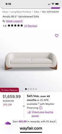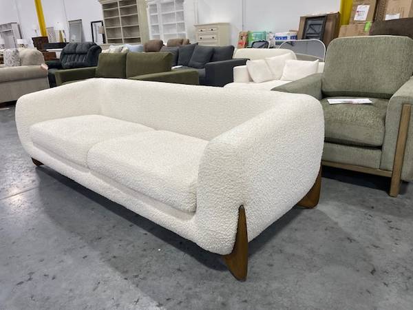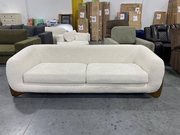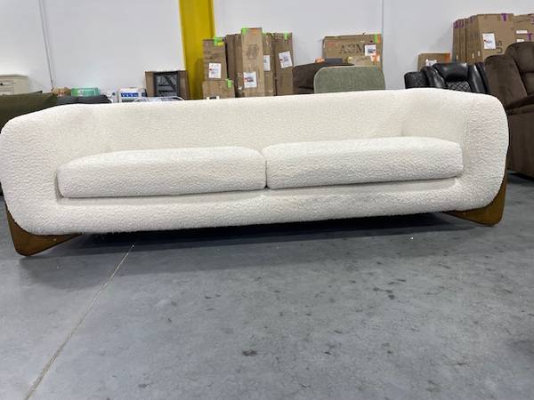 Brand New Mid Century Mod Amala 90 in Upholstered Ivory Boucle Sofa Couch