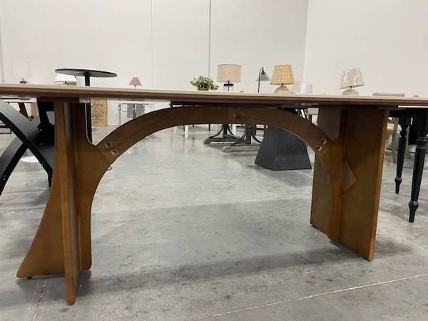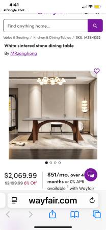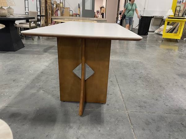 Brand New MRzenghong 71 in White Sintered Stone and Walnut Dining Table Measures 71 in W x 36 in W x 30 in H The bottom of one of the legs had a repair but you can not see it with chairs at the...