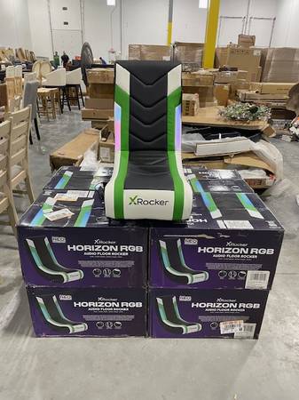 Brand New X Rocker Horizon RGB LED Audio Floor Rocker Gaming Chair Green/Black/White with Built in LED Lights and Audio!