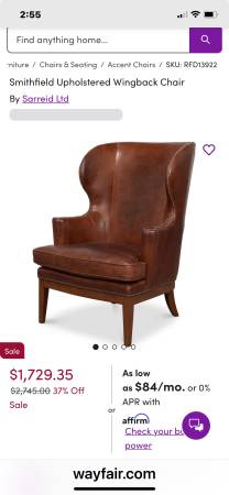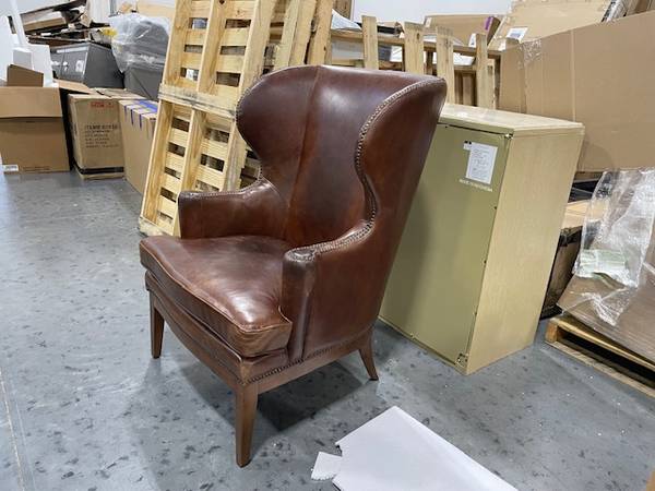 Brand New Sarreid Ltd Smithfield Solid Wood Frame Genuine Top Grain Cowhide Upholstered Wingback Chair Dimensions 44'' H X 30.5'' W X 29'' D Located in Noblesville Just north of Costco next to Indy...