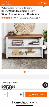 Brand New Walker Edison Farmhouse Lucas 30" Shelf Accent Bookcase Console Reclaimed Wood Dimensions 30" H x 52" L x 16.5" W Located in Noblesville Just north of Costco next to Indy Premier Soccer...