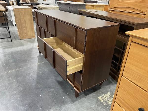 Brand New Walker Edison Modern Walnut 6 Drawer 60" Solid Wood Dresser with Vertical Accents Dimensions 32.88 in. H x 59.75 in. L x 18.31 in. W Located in Noblesville Just north of Costco next to...