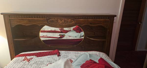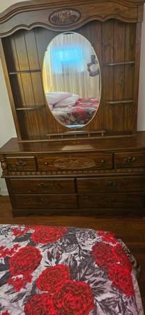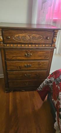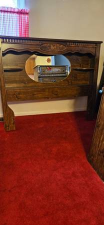 3 PC Full size bedroom set. Bed headboard that will fit full or queen, dresser with mirror and chest of drawers. No mattress or box spring. Willing to take 75 or best offer. Will need to pick up and...