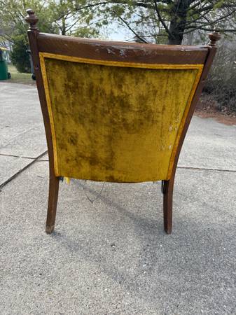 This piece is awesome, a 70s gem with so much potential to have new life breathed into her! She’s not in terrible shape! The caning has just been a little sanded but not much and is otherwise good repair. The bones are solid. The upholstery needs replaced. This chair will be stunning with a redo and i love it i just don’t have time to do her justice right now.