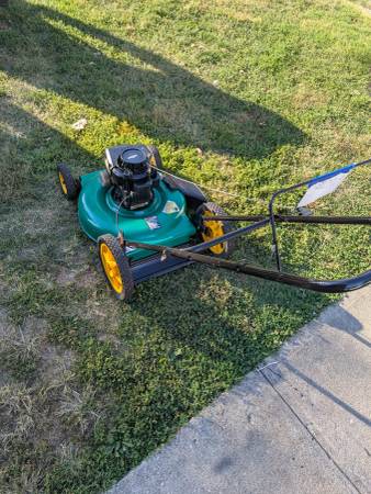 Has a 5.50 H.P. Briggs engine. Has new oil and spark plug and air filter. 22" Cut. Blade sharpened also. Runs Great. I do take trade-ins. Thanks for looking.