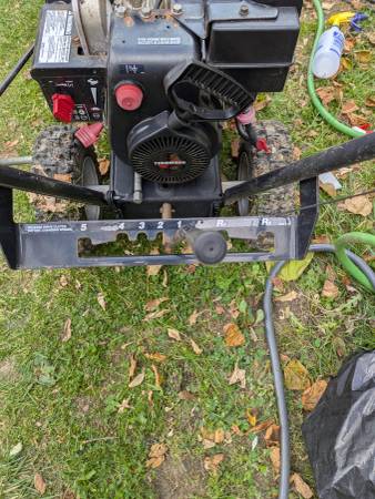 This bad boy is ready to go. Has a new carburetor and new spark plug. 5 Forward speeds and 2 reverse speeds. Runs and we works great. Buy now, when the snow comes down the price will go up. Thanks...