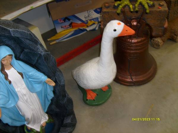 I have Painted and Unpainted Concrete Porch Geese and also around 3,000 different Concrete Statues for Sale. Please follow me on Facebook @ Snyder's Concrete Statues for any questions you have send me a message. Located just outside of Greensburg, Indiana. Delivery is available for a extra charge. My phone # is a landline but do not try to text just call thanks.