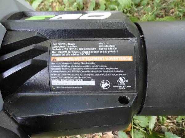 CLEAN EXCELLENT WORKING CONDITION - EGO 56-VOLT LEAF BLOWER - RATED 530cfm - INCLUDES BATTERY AND CHARGER - $150.00 - PLEASE CALL AND LEAVE A MESSAGE OR TEXT - THANK YOU -