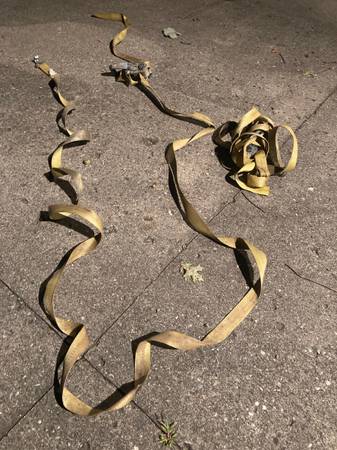 Heavy duty ratchet straps 2 inches by 20 feet. Used to support a climbing wall. Stained from being in the dirt but in great working order.