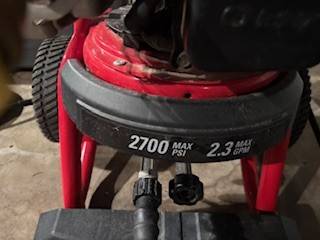 This powerful, gas-powered Troy-Bilt 2700 PSI Pressure Washer (originally sold exclusively at Lowe's) is ready to tackle any outdoor cleaning project you throw at it. NOTE: Unit weas serviced last year, but sat unused and I am having trouble strating it this year. Likely just needs some starter fluid and a little engine know how. I am sellign it because I have a bad shoulder and can't easily deal with pull start equipment.