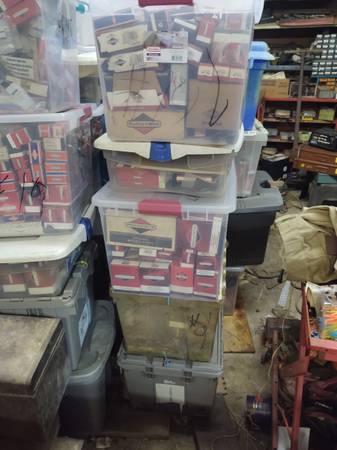 Briggs and Stratton, Kohler, Tecumseh engine parts. All brand new in the box. A small engine repair shop retiring. Have spreadsheet of parts and list prices and quantities. Many parts and other brands not listed. All parts are in totes with individual inventory. A great opportunity to start your own business or add to your own inventory. It is priced 40 cents on the dollar