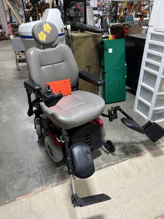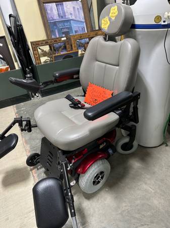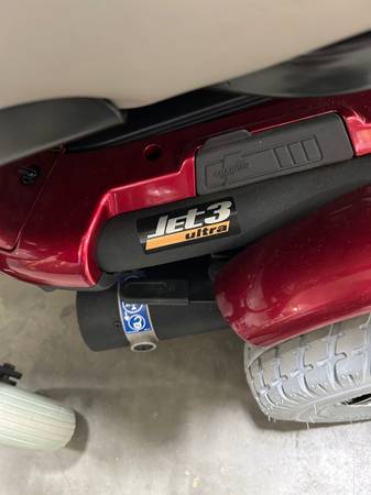 Pride Jet 3 Ultra Mobility Scooter. Excellent condition, previous owner only wanted to use when could not walk. Only used twice, never used outdoors. Zero turn, great for indoors or out. Located at Treasures Consignment and Flea Market. Bought new in 2005, used twice. New batteries installed 3 weeks ago.