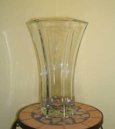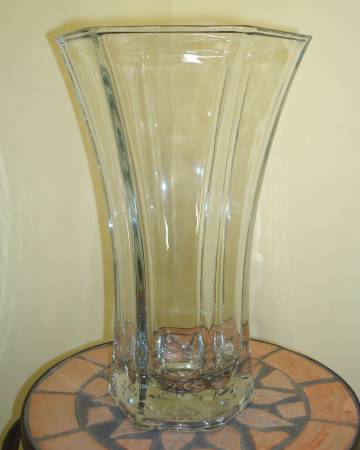 ✨ Elegant pressed glass vase with a flared top and faceted hexagonal base—classic craftsmanship from Indiana Glass.
