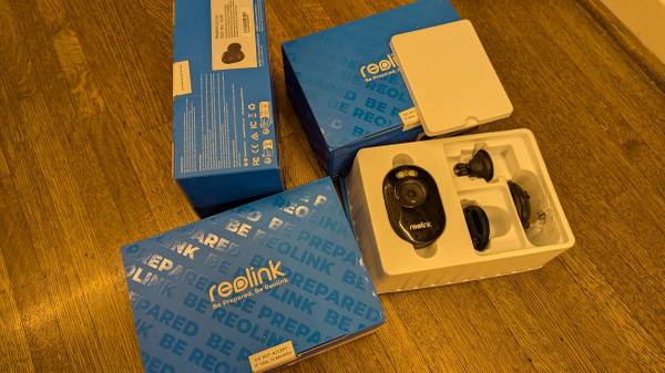 I bought these four security cameras a year ago, and never got around to installing them. I opened one, and lost the box, but never used it. The other three are unopened. $30 each or $100 for all four. I think I paid $45 each new.