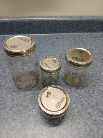 15 ASSORTED BALL JARS WITH LIDS AND EXTRA LIDS 3 SIZES JARS - ALL CLEANED - IN GOOD CONDITION CASH ONLY