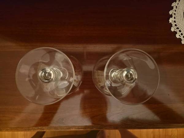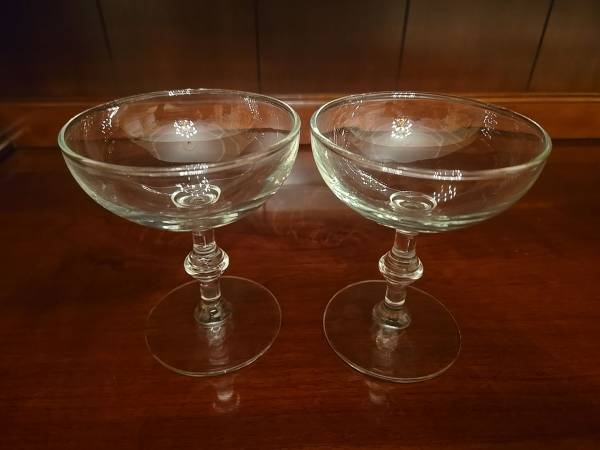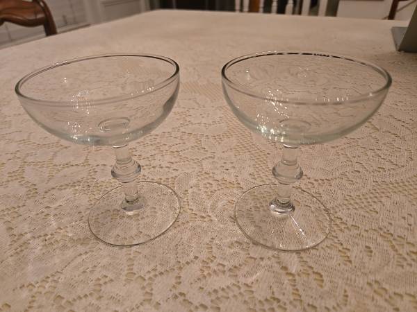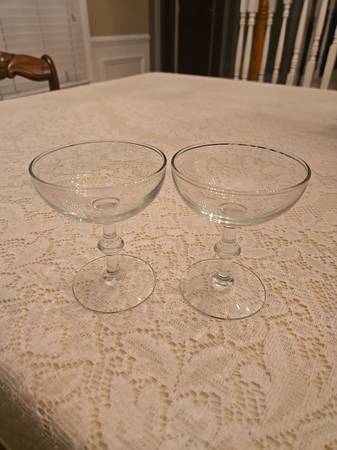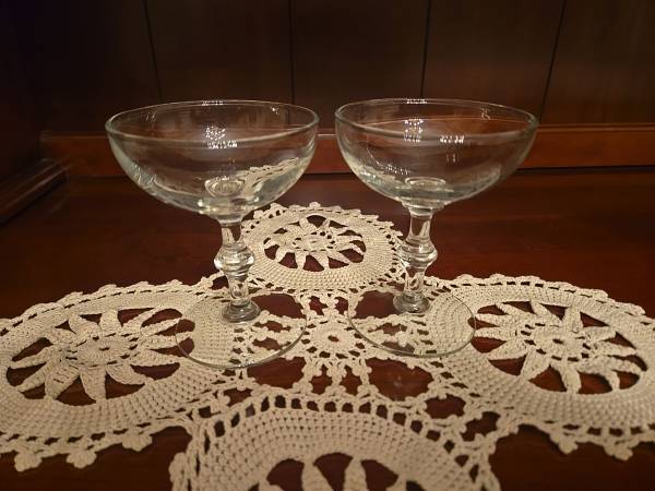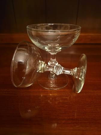 This is a vintage pair of crystal champagne glasses in excellent like new condition--used only once. Perfect for wedding, anniversaries and any celebration for your favorite kind of bubbly. I have 2 sets of champagne glasses available, make offer for both.