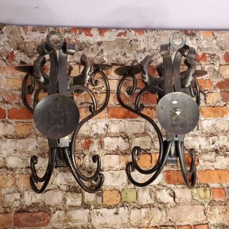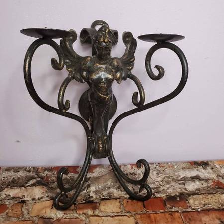 Nice Pair Winged Mermaid Metal Wall Sconse Candelabrum 14in. Can be seen on west side Indianapolis Mann Rd and Kentucky Ave area.
