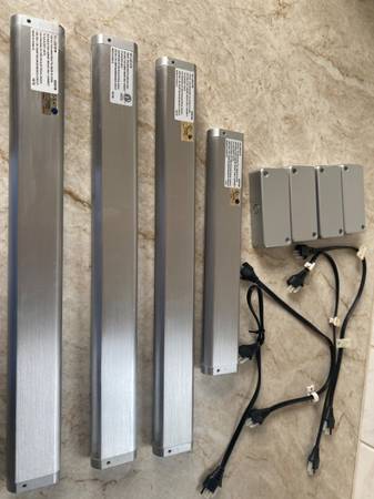 Under Cabinet Lights : Brushed stainless finish, in very good condition, Qty of 4; (3) at 18" and (1) at 12" all required hardware included.