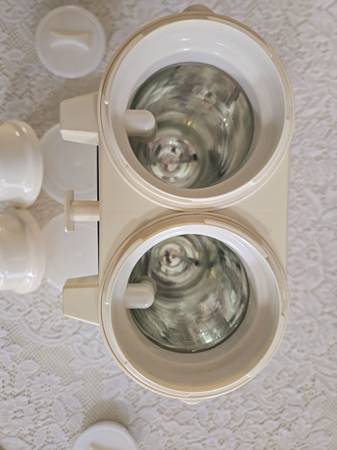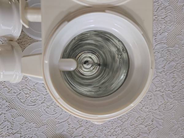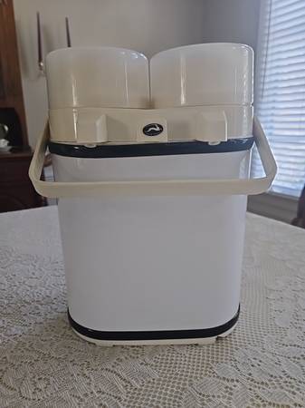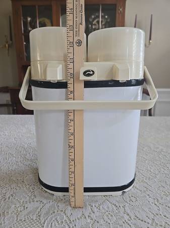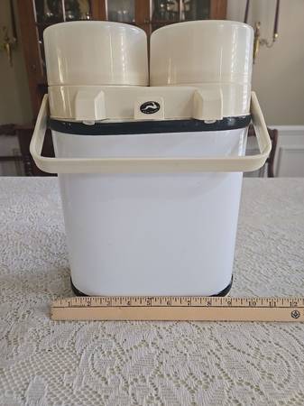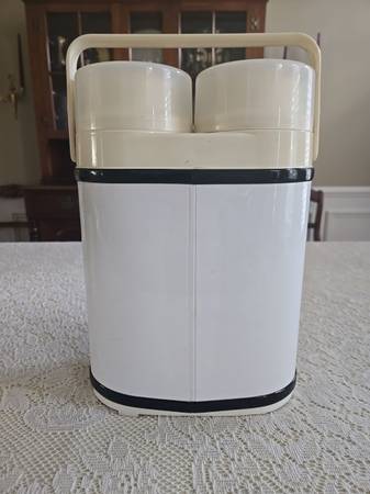 Kraftware dual hot/cold thermos with pump. Great for camping, picnics and entertaining. Good condition but see photos for cracked plastic around foot in front and back. Still sits level. Clean and...