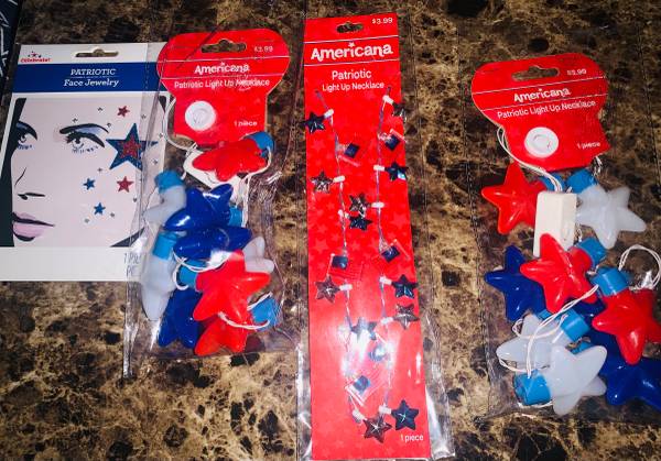 (4pcs!) Patriotic Light Up Necklaces plus Stickers