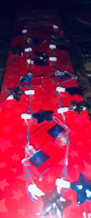 (1 Light Up Intertwined Wire Thread USA flags, shiny metallic blue and silver plastic stars each 1/2 in.)