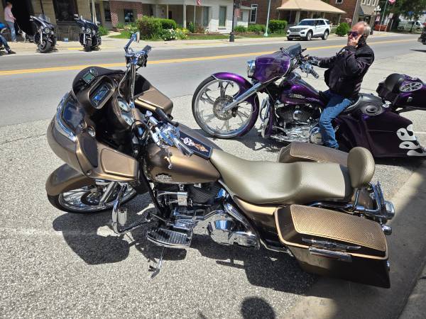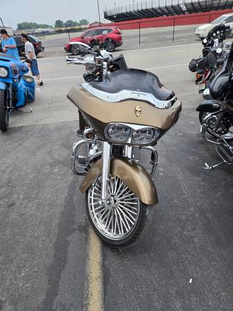 Beautiful bike minor damage is why its so cheap it needs both bags and fender those are cheap and painted. Maybe $2000 to fix you have a nice bike.screaming eagle top of the line harley. Its a custom pewter color everyone says i love that color new tires new rims customed out all it can be i just paid $985 for back tire all fluid changed and timing skull cover put on have receipt for that. You can keep or fix it flip it was offered $12000 before text or call