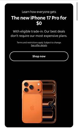I work out of the Greenfield AT&T, we have a lot of really amazing deals right now to get you the phone you deserve! Up to $1,100 off 17 Pro and 17 Pro Max! Up to $700 off 17 and iPhone Air! Up...