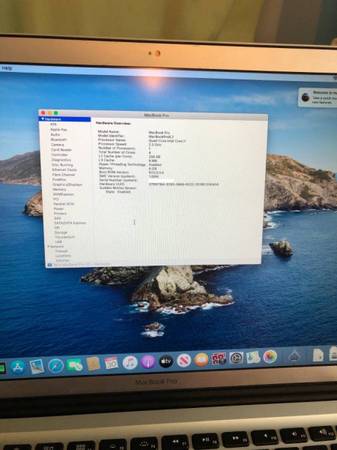 Macbook Pro late 2011 with 15 in screen, 8GB RAM and 512GB solid state drive. Its loaded with Catalina OS fresh and performance is great! I am the original owner and took great care of it. It was in a protective case most of its time. The laptop has a cd/dvd, SD reader, in/out audio, USB and magsafe power. Wifi works great as well.