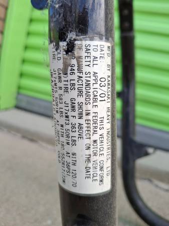 2001 Kawasaki ZRX 1200 frame. Salvage title. Small shipping nick on top of neck, otherwise in excellent shape.
