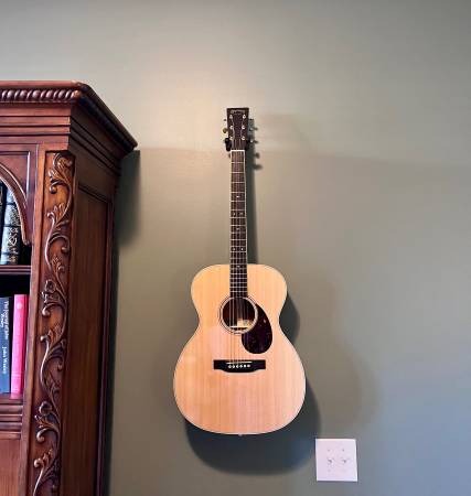 Located in Carmel. Beautiful OM Cherry acoustic electric guitar with cool limited edition case. Only flaw is scratch on top which you can see in last picture.