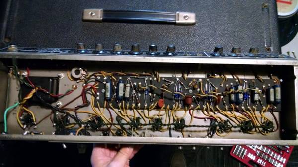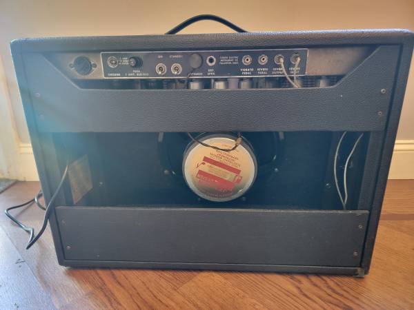 The amp itself sounds great with great headroom and beautiful breakup. Tolex is in decent shape for it's age. See pic/ front right lower corner has some tolex lifting but nothing major, with a few scuffs picked up along the way. I would say this is not a museum piece- but a collector with lots of mojo. I have owned this amp for many years and has always professionally serviced and cared for.