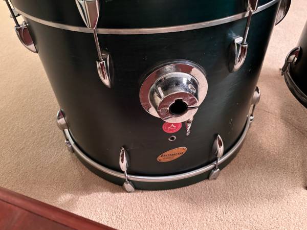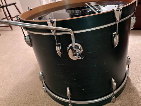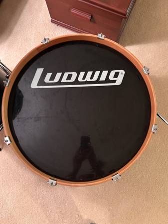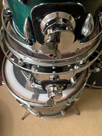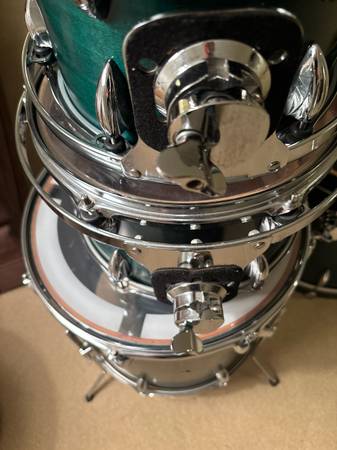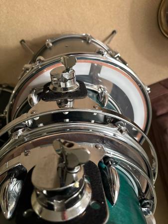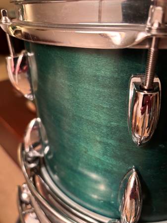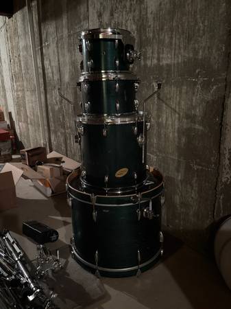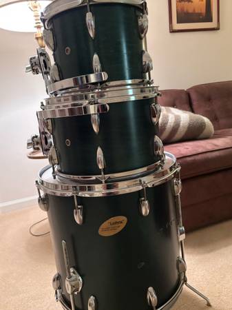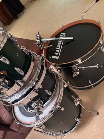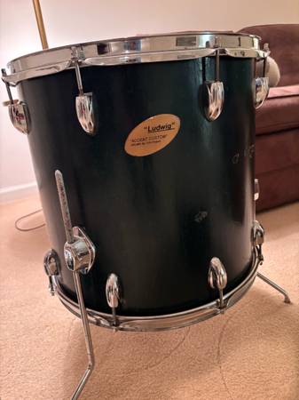 Beautiful green stain maple Ludwig drum set. Four piece. Rims mounts. LUDWIG Accent pro edition custom drums all original b/w Pearl floor Tom leg mounts. 22, 16, 10, 12 inch diameter. Tuned and set...