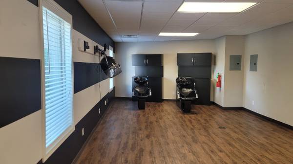 Suite 107 (1,072 SF): Private entry suite. Currently built out as a salon with 2 hair washing stations. Suite features LVP flooring, private restroom, large open space, and a semi private area. Rate: $1,950