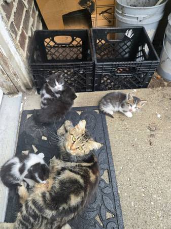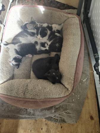 Community cat had her kittens available to pick up today -3 kittens left -unknow genders Text for location 805•two•two•nine•nintysix•50