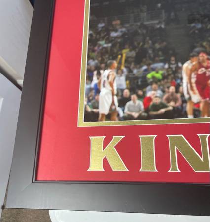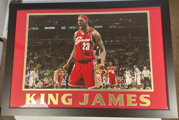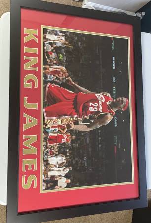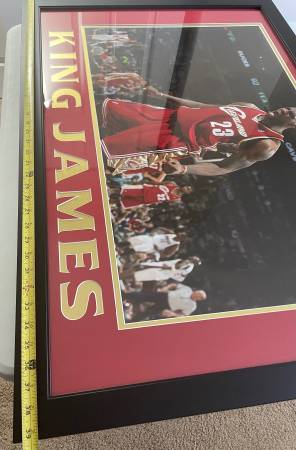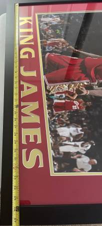 LeBron James Framed Picture King James Cleveland Cavaliers Size including frame: 39 1/4 inch width 27 1/2 inch height Actual picture size not including frame 35 1/2 inches width 23 3/4 inches height