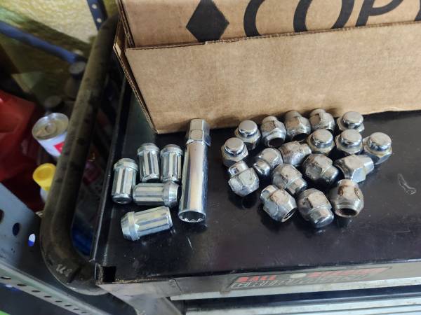 Complete set of lugnuts with set of 4 locking lugs with key. Splined style.