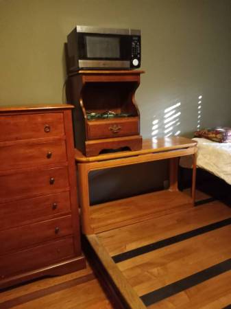 The last renter hasn't got all of his things out yet. Bed is only a year old. I'm washing the sheets. Room might come with fridge and microwave, not sure yet. The room has it's own heat and air. House has tankless water heater. Endless hot water. I plan on getting Roku tv.