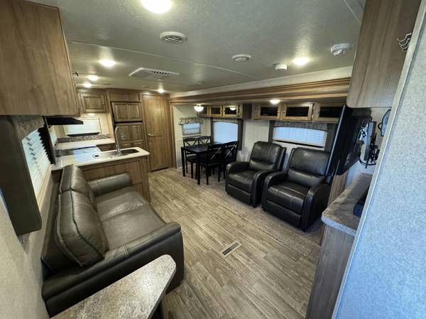 The Used 2018 Forest River Flagstaff 29RKWS delivers a comfortable, lightweight design with a rear kitchen layout, excellent storage, and the premium features campers love from the Super Lite series. With upgraded interior comforts and convenient exterior additions, this travel trailer is ideal for weekend getaways or extended adventures.