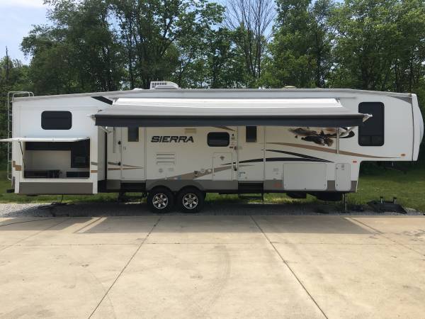 39’ 2010 Sierra 5th wheel camper. 2 bathroom, king size bed, shower, double bunks for kids, large kitchen and couch. 3 tvs. B&W 5th wheel hitch included.