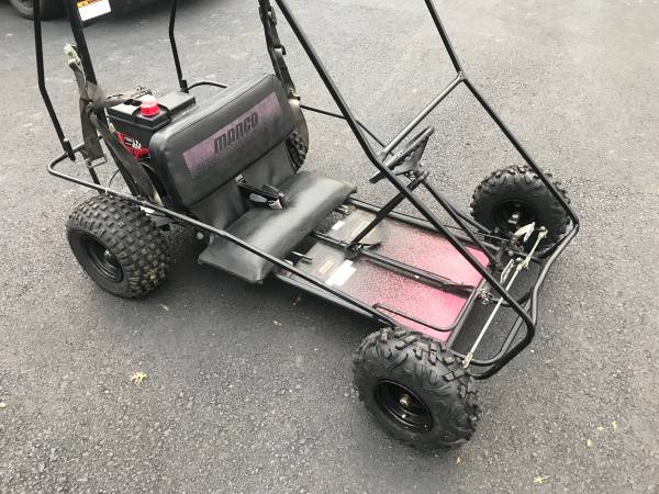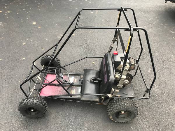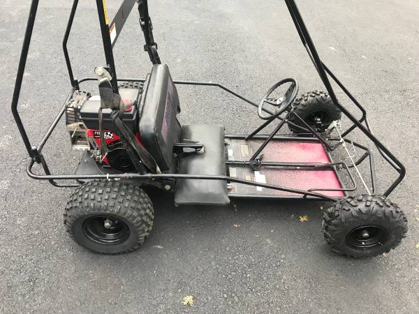 Nice little Manco Dingo Two seater go kart. Has Techumseh 5hp powersport engine with torque converter. Has brand new front tires along with front drive. Go cart is ready to run and ride!