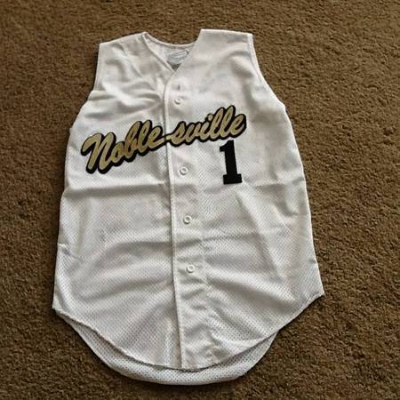 Pic #2 - Noblesville white baseball button down mesh jersey vest. Sewn on "Noblesville" and number "1".