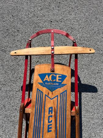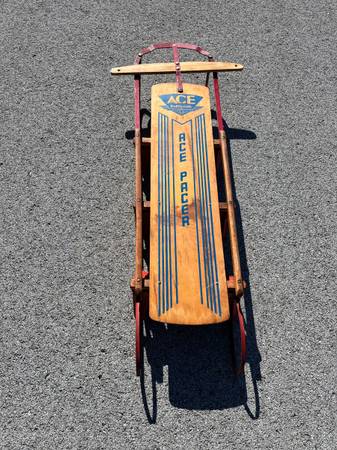 1950’s Ace Pacer Wood & Metal Snow Sled Measures 53” Long X 22” Wide X 6” Tall. Email Me If You Want It!