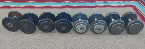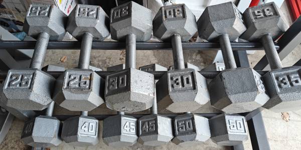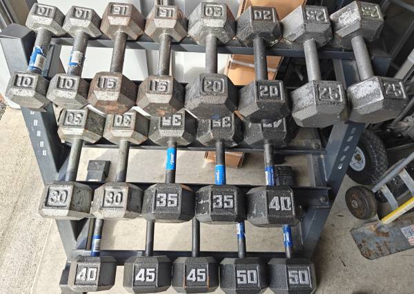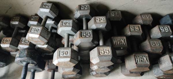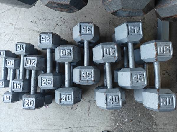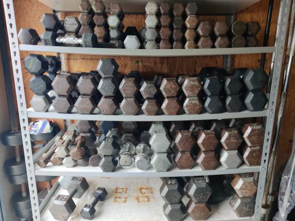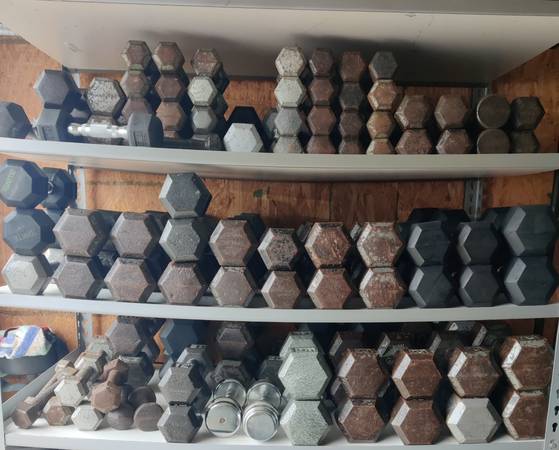 Selling a wide assortment of steel dumbbellsβboth used and new. Includes round and hex shapes, with assorted pairs and full sets available. Full sets are listed individually. Most show superficial...