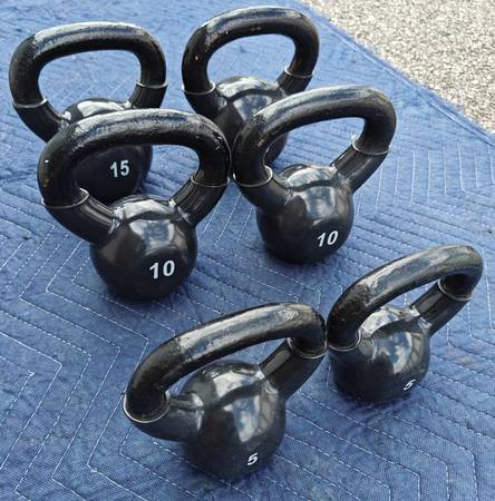 Selling pairs of kettlebells in good used condition. These are black kettlebells coated in neoprene with clear weight markings—perfect for home workouts, strength training, or adding variety to your fitness routine.